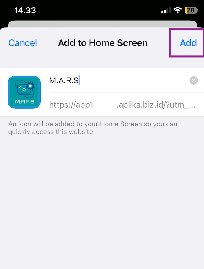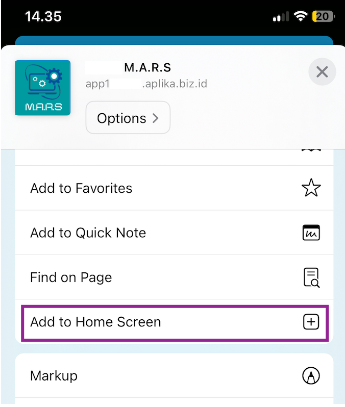 Kemudian scroll ke bawah pilih 'Add to Home Screen'