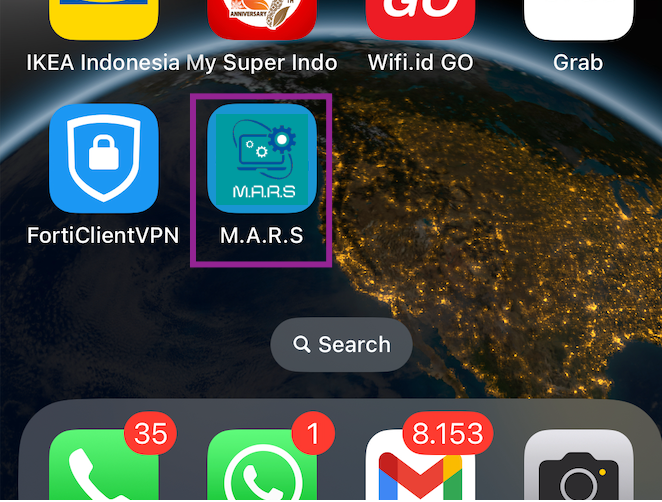 Setelah itu tutup browser Safari, dan jalankan aplikasi dengan klik icon M.A.R.S di Home Screen